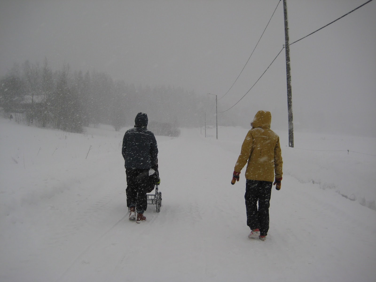 Tytär kypsytteli itseään elokuun 15. päivään asti, jolloin hänet houkuteltiin ulos mitä moninaisimmin käynnistyskeinoin. Loppukesä ja syksy meni opetellessa vauva-arkea ja edelleen nauttiessa kotoilusta. Marraskuun lopulla aloitimme tavaroiden pakkaamisen ja laatikoiden viemisen Sotungin kotiin. Viimeiselle muuttopäivälle osui talven ensimmäinen lumimyrsky ja lunta tulikin kerralla monta kymmentä senttiä. Emme ole vieläkään täällä asuessamme kiertäneet taloa ympäri...